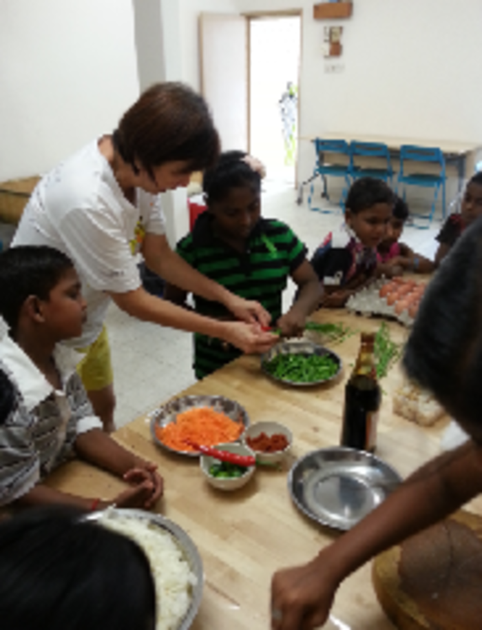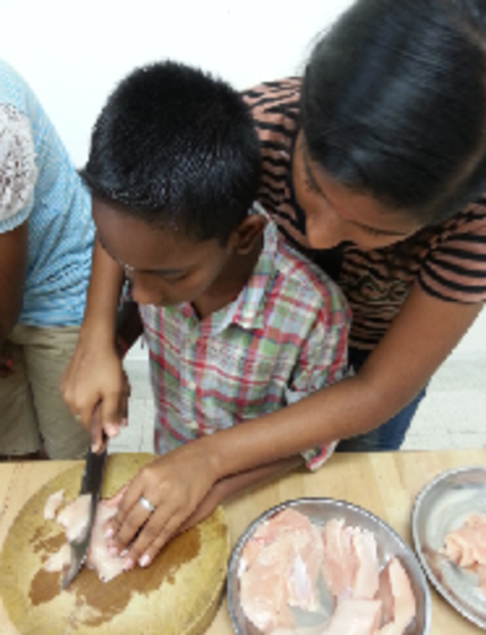 The center prepared the ingredients for the noodles such as carrot, kuey teow noodle, beansprouts, lime chilli, chicken, egg and sauces. An example of how ingredients are prepared is shown by the cook and then the children were hands on by preparing he ingredients themselves by cutting and washing it all. Then, proceeding to the next step which is frying the noodle. First shown by the cook and then the children themselves, whereby they were all guided by the adults around.