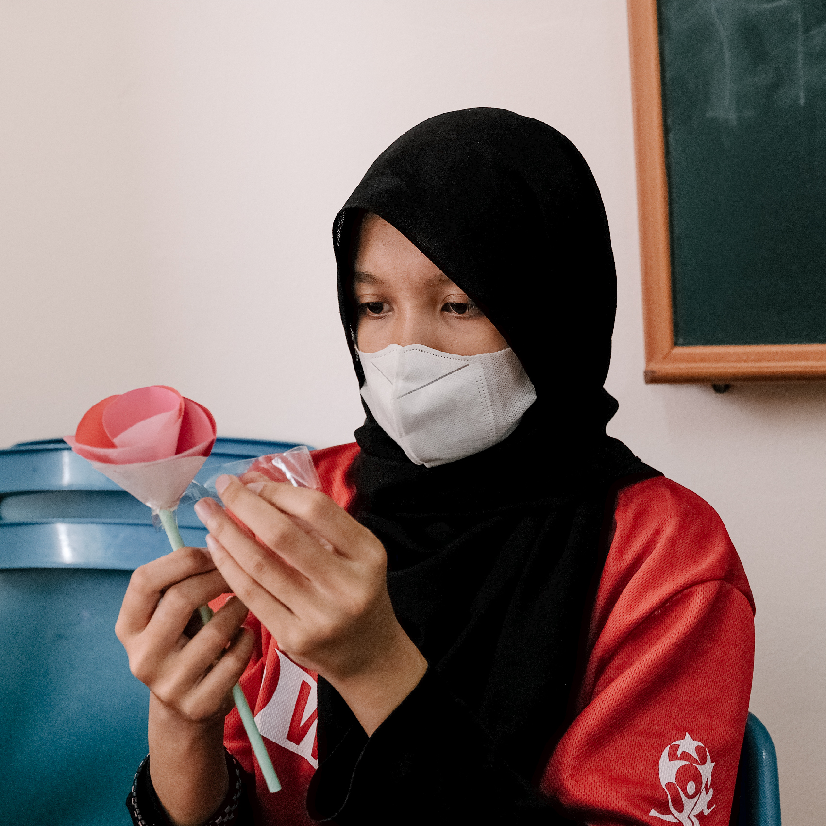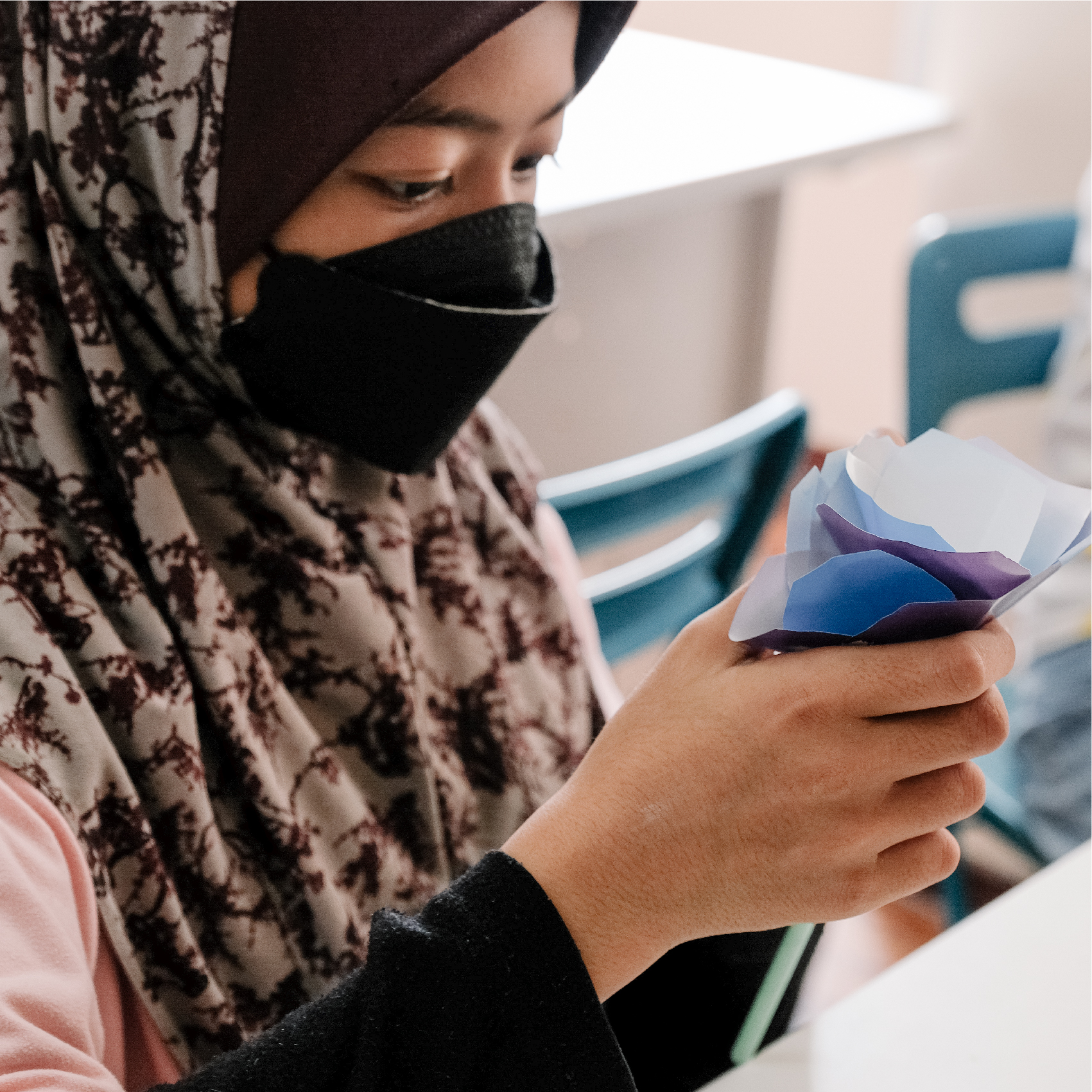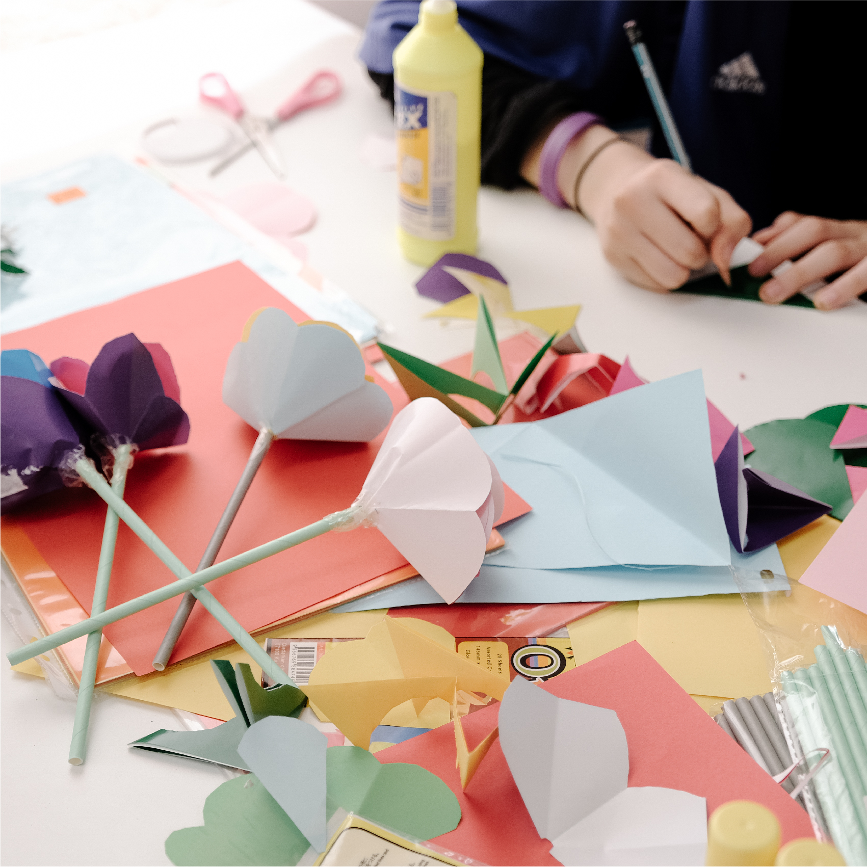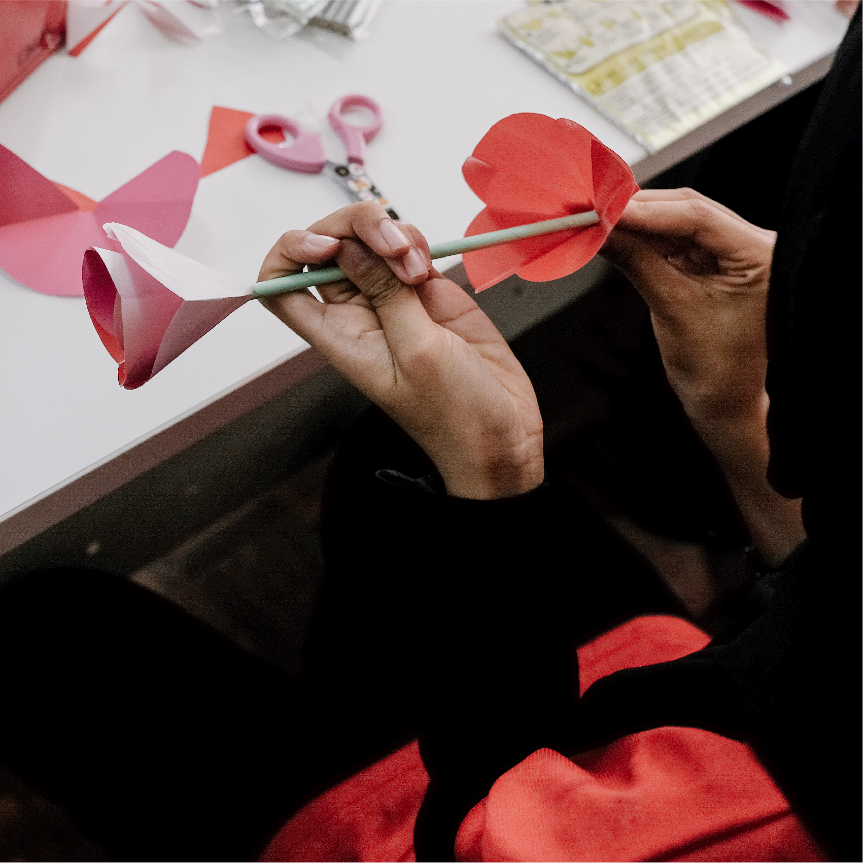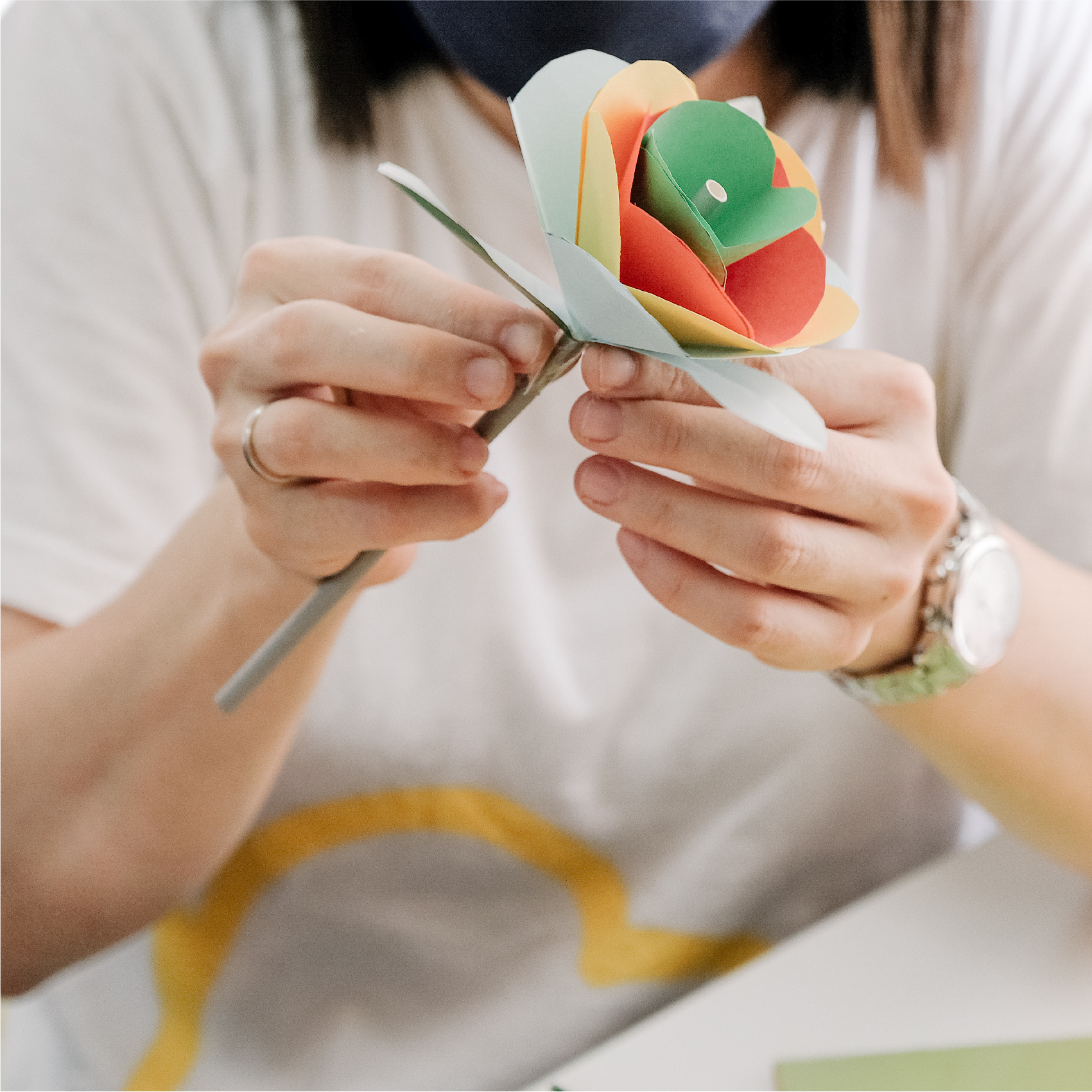 中心的员工会一步步引导孩子们如何从折纸、剪纸直到完成一束束五彩斑斓花束。