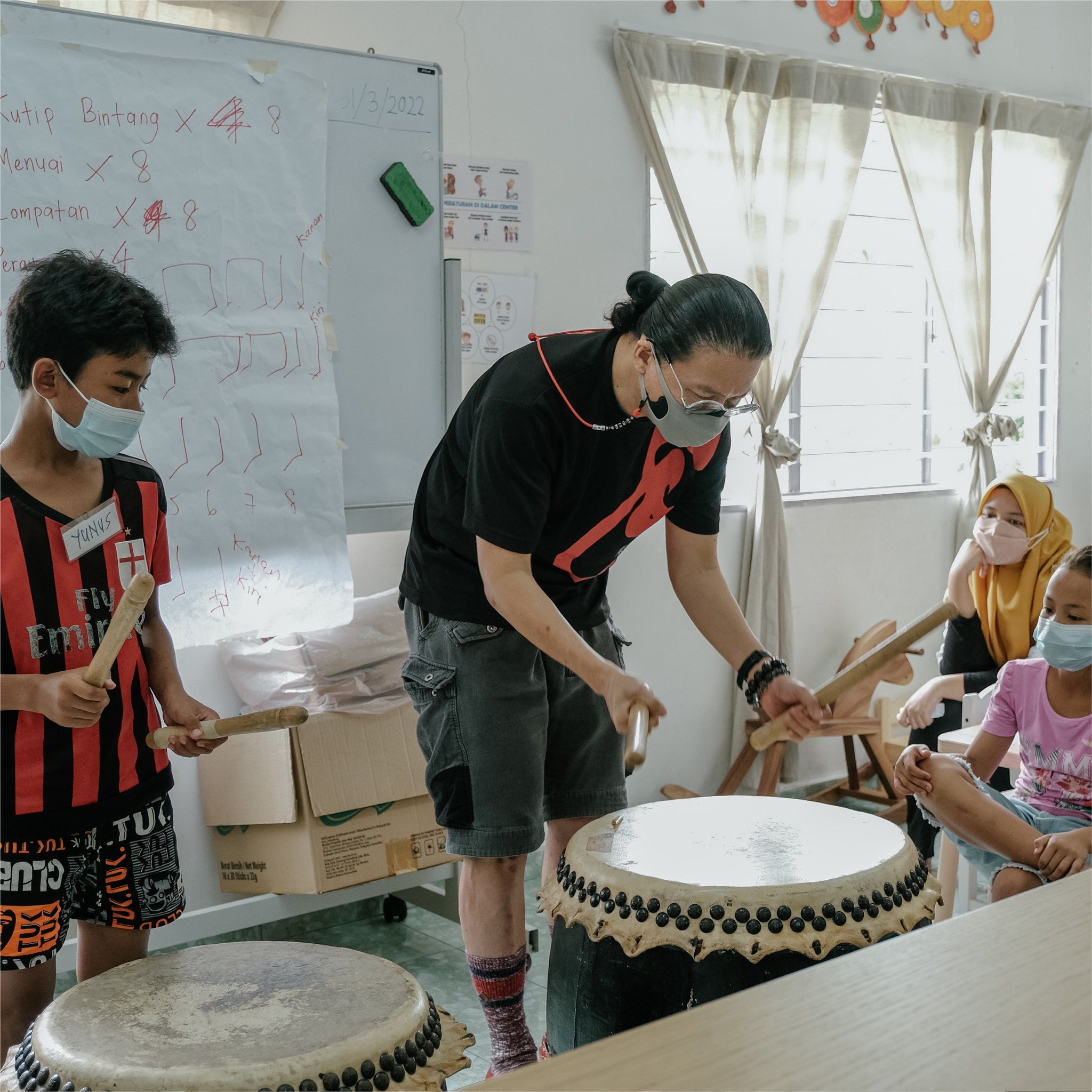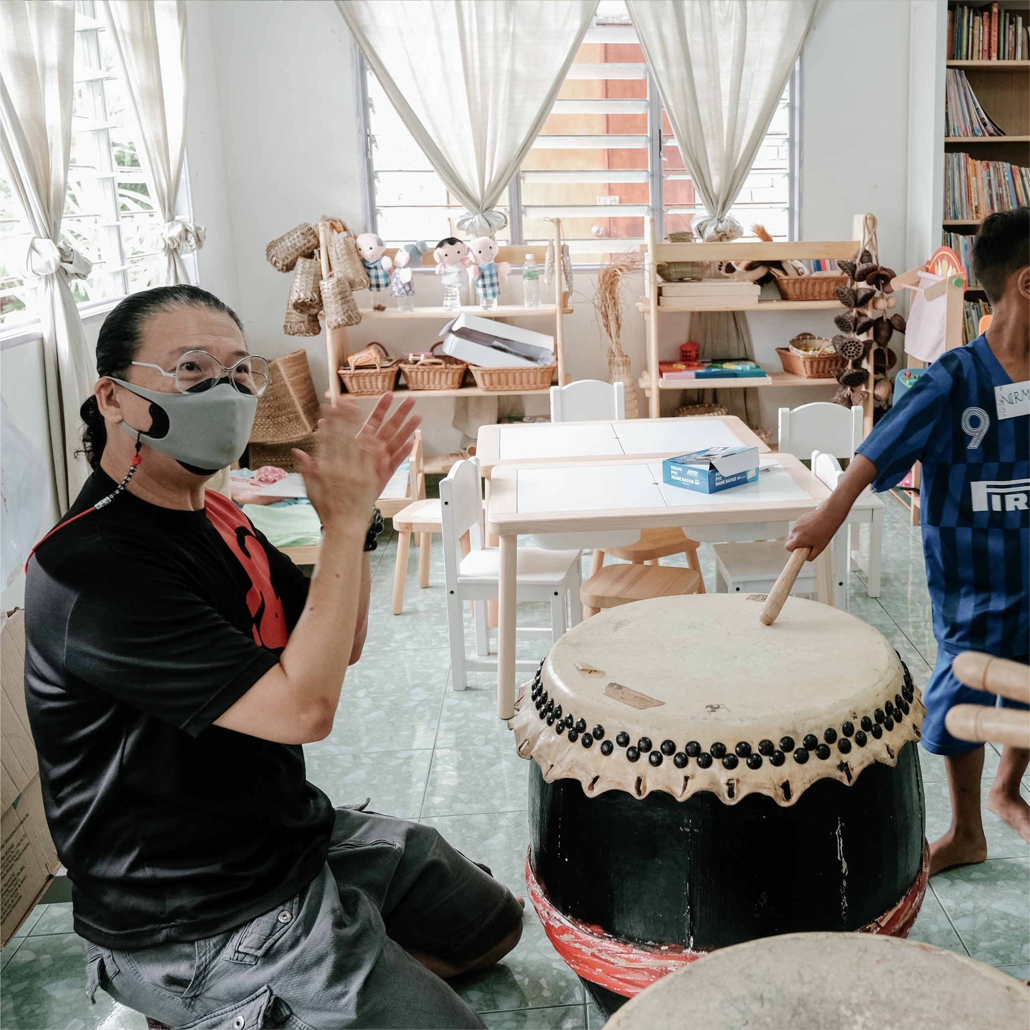 打鼓班是他们最期待的活动之一,目前中心里有3个鼓供孩子们轮流学习。在专业教练的带领下,孩子们都学习到正确的打鼓技巧与掌握基础的节奏。