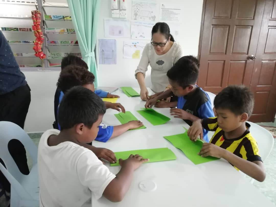 摺紙被公認為是一種培養耐性與專注力的手工藝術,摺紙手工對於成人或兒童來説都是一門有趣且 有益的活動。這一次,我們把摺紙手工帶來給小黃花基金會原住民兒童們,我們一起進行了一堂非常開心的摺紙課程。當孩子們領到我們分配給他們的漂亮摺紙時就已經非常雀躍,接著每個人都很專心的聆聽每一個步驟然後開始動手製作。摺紙手工不但可以鍛煉孩子手指的靈活性,發展孩子的動手能力,還可以培養孩子按步驟及有順序認真做事的良好習性。一張張彩紙,在小朋友們靈巧的雙手下變成各種模型,其中有青蛙、小魚和舢板等等,孩子們興奮難耐,同時也對摺紙手工產生濃厚的興趣並迫不及待的想要和其他朋友們分享這門新學的手藝。大家在 一片滿滿的 歡笑中完成 了一堂摺紙手工課程