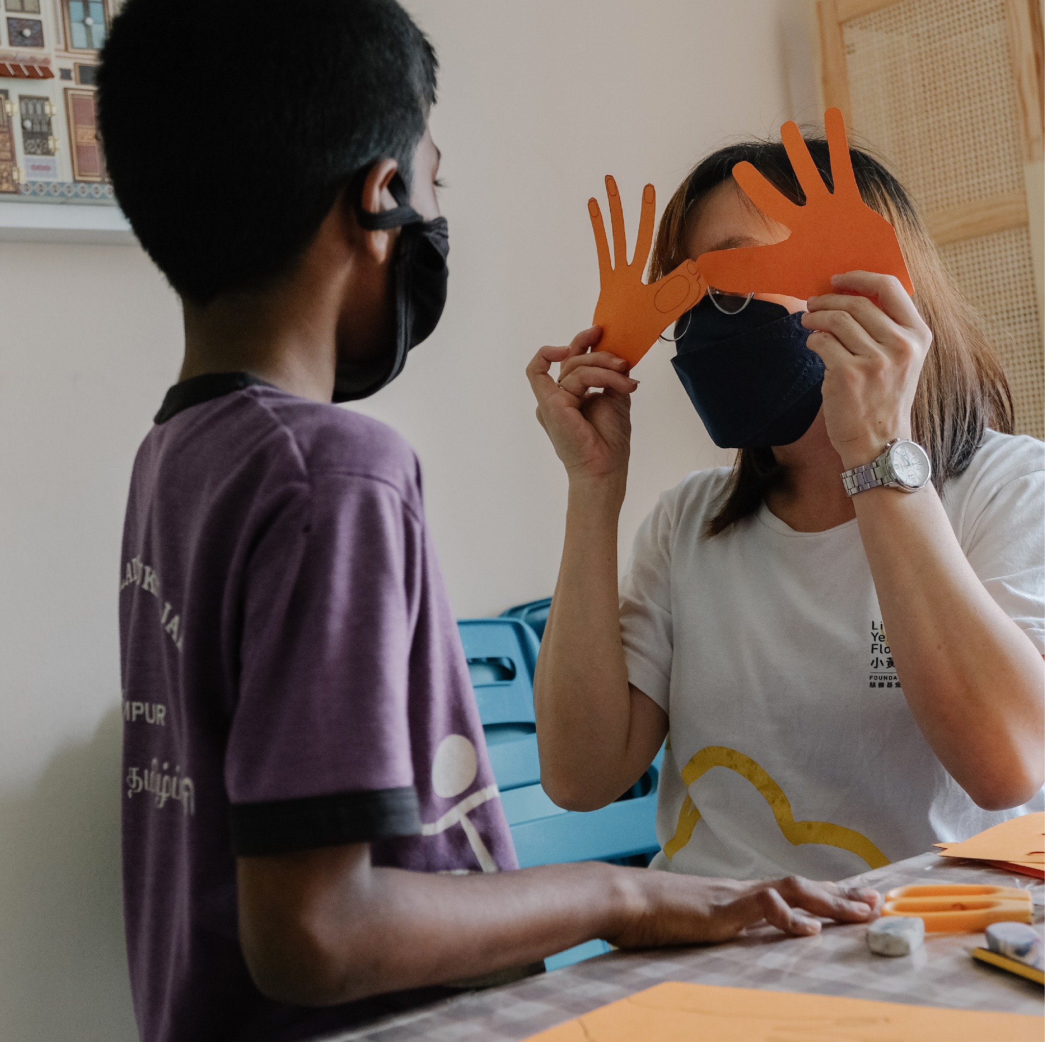 自制手掌面具 制作面具是一项适合成人和儿童共同参与的有趣 DIY 活动。这不仅仅是一个创意 的玩意儿,它还是一种艺术体现。小朋友可以凭着自己的想象力和创意,把一个个富有特色的面具通过手作呈现出来。 过程中,他们绞尽脑筋利用手掌和手指印画出不同形状的面具,孩子在专注且用心的氛围下启发了他们做出一个让人眼前一亮的面具,来迎接开心的每一天。