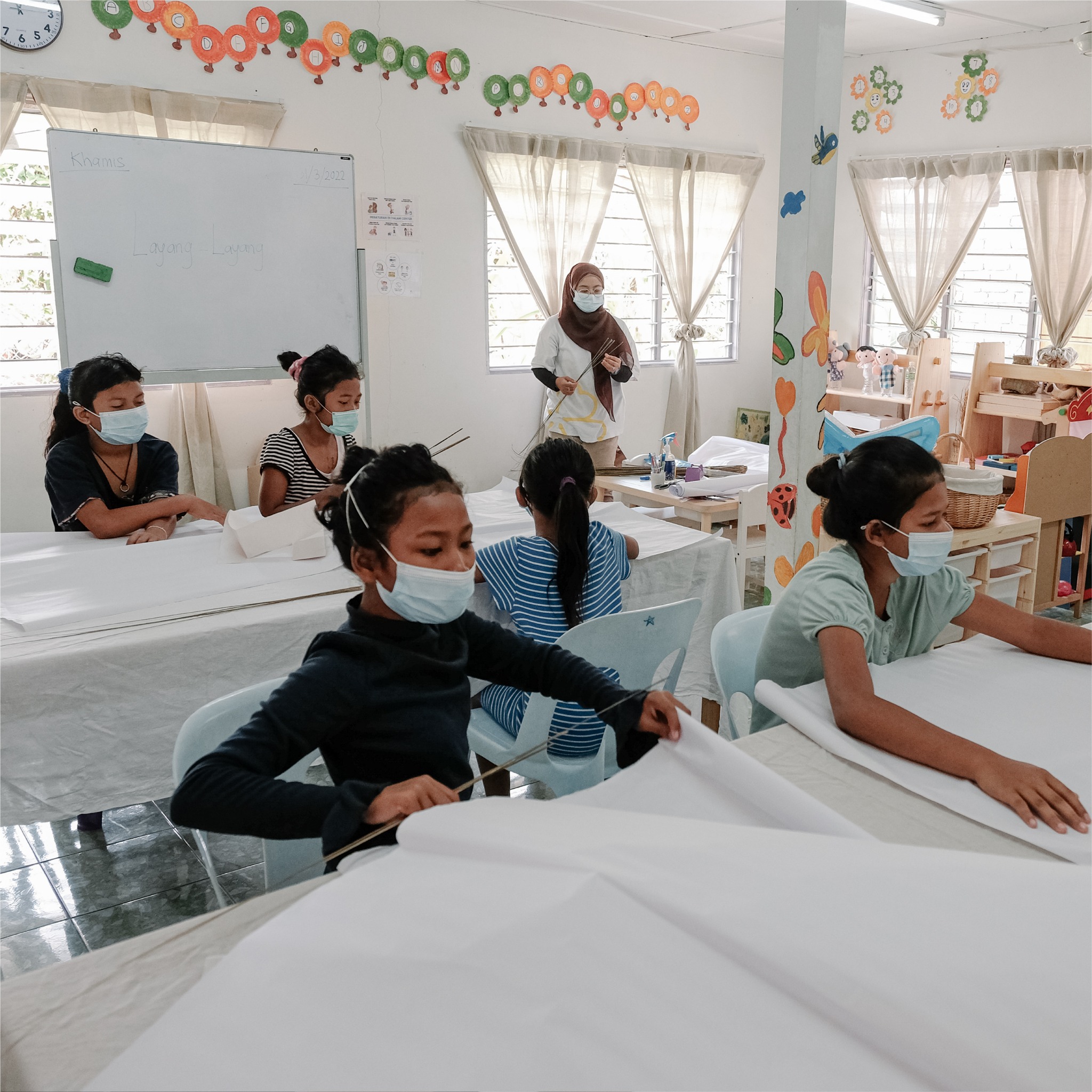 放风筝是民间传统游戏之一的户外活动。 制作风筝非常简单,要求的材料也不繁杂,因此我们决定让他们尝试亲手制作并设计充满梦想的风筝。