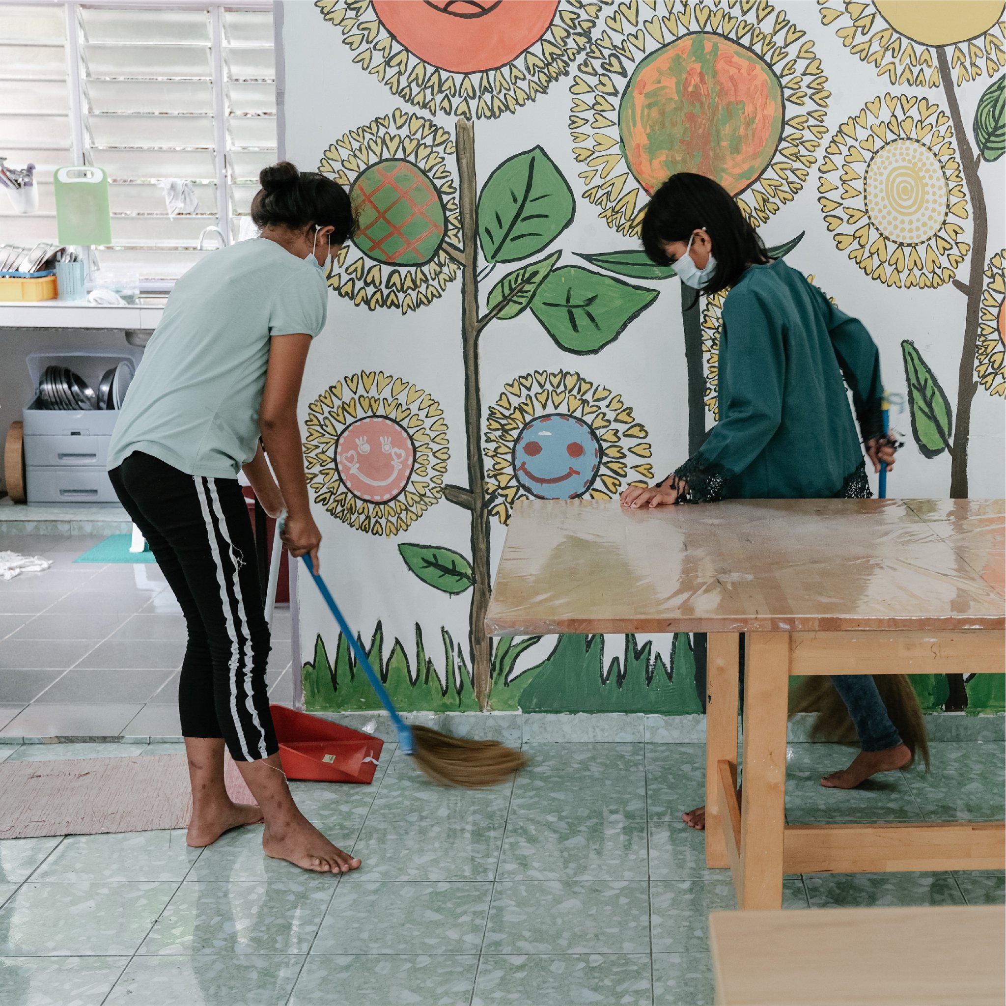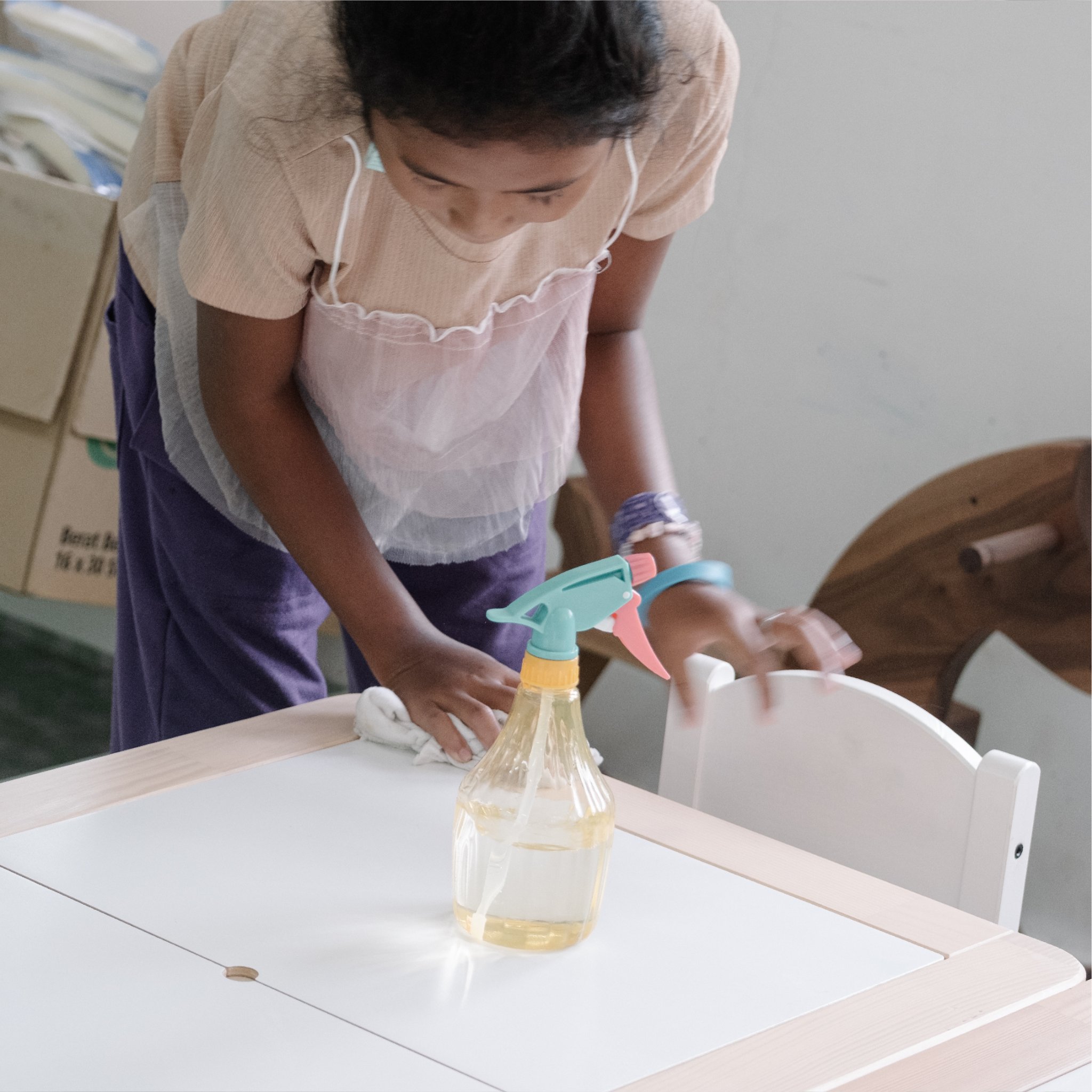 We always encourage our children to help out around the center with daily chores and educate them that helping out with the chores is a way to express their gratitude to someone who always doing chores at home. It is also a way of letting them know that center is their second home and that we are completing these tasks as a family. Getting a chore done and doing it well can give children a major sense of accomplishment and can emphasize the value of keeping things clean and organized in their daily lives.
