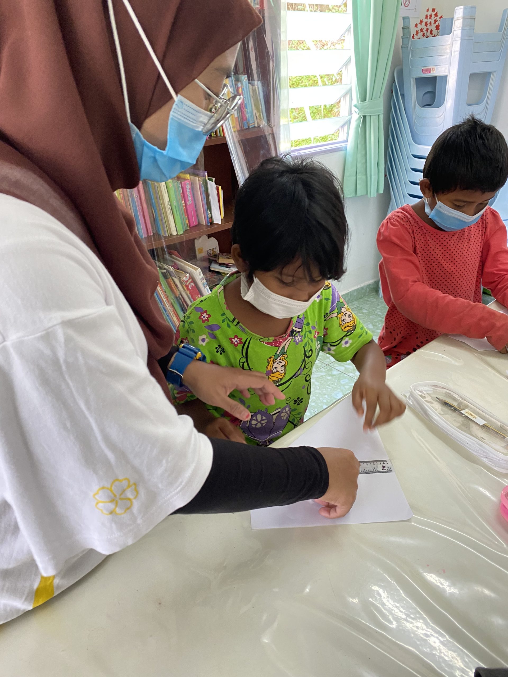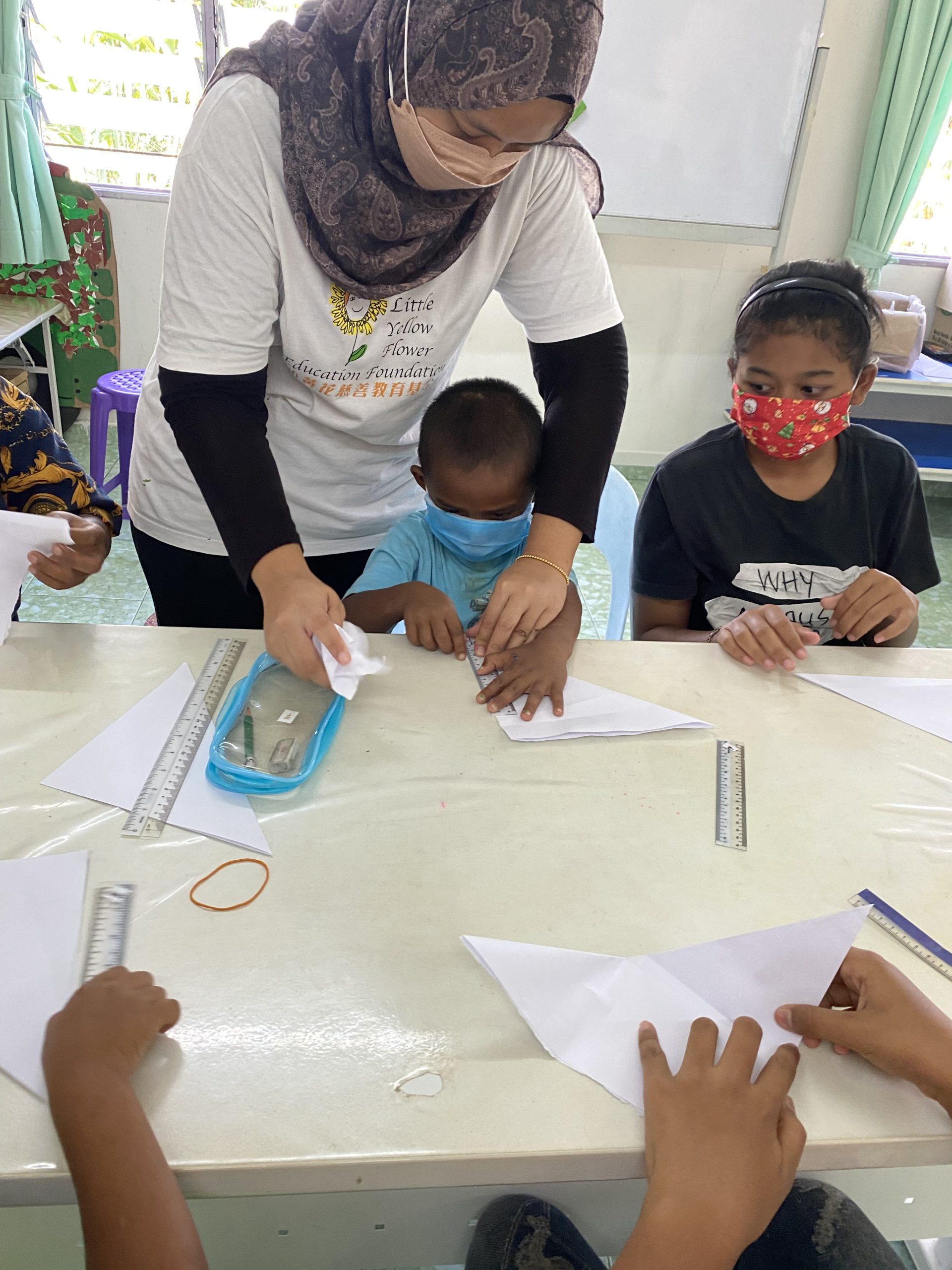 These 2 origami are more complex than before. The children have to follow exactly the instructions and demonstrations given by the kakak Eila, they are not able to get the perfect shape of the origami. The children managed to make the origami with the help of their friends and kakak