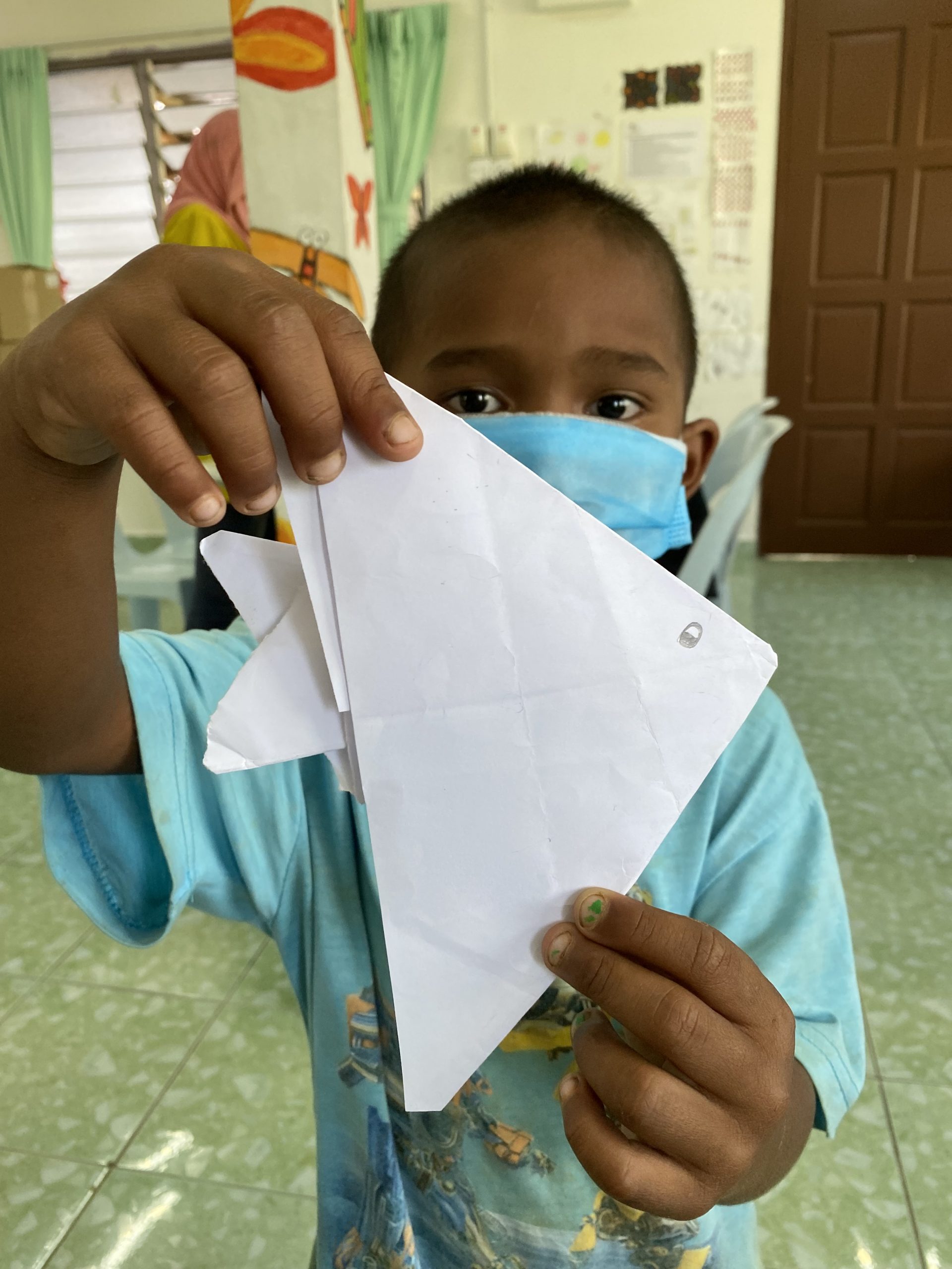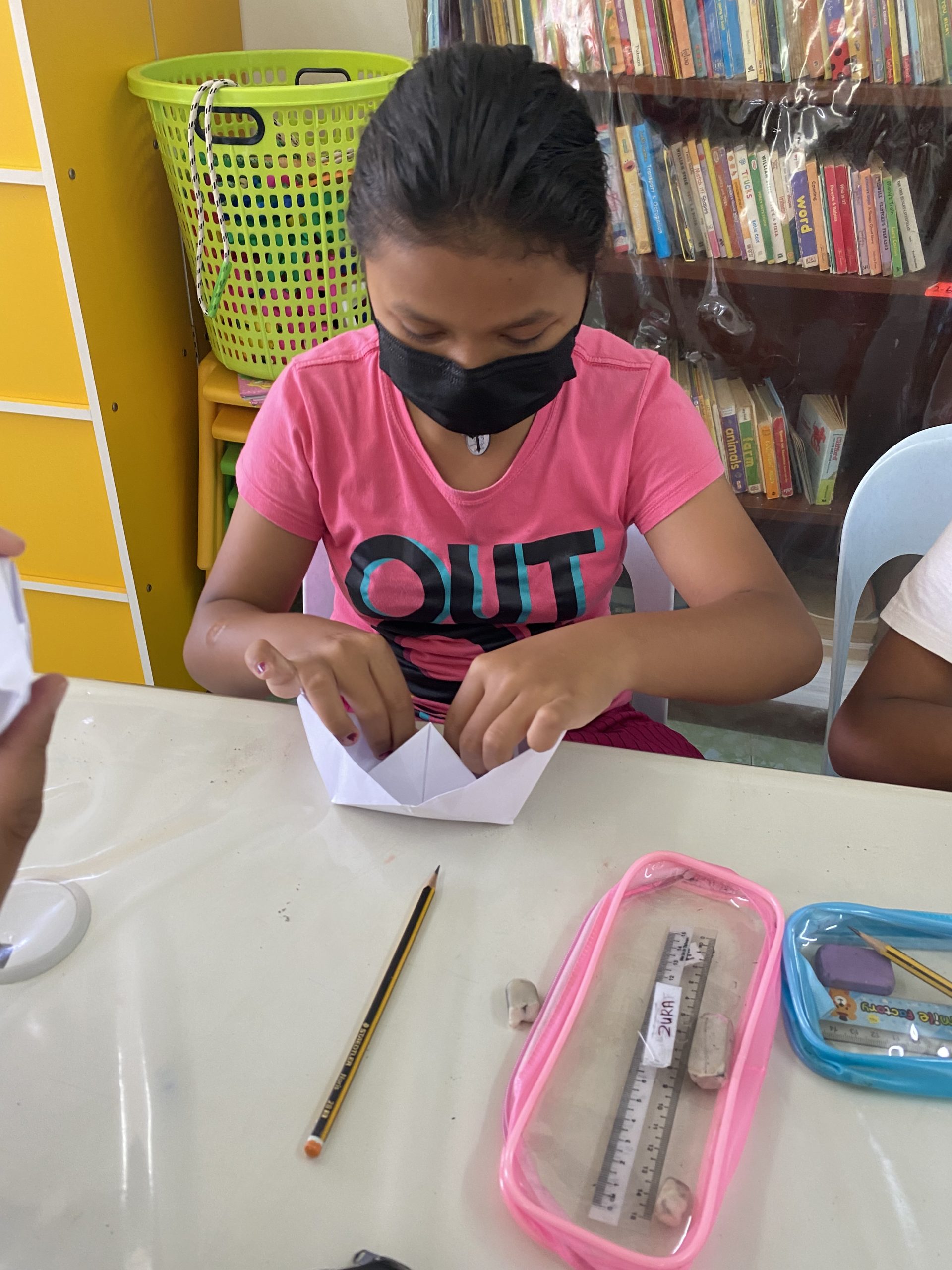 Origami is a fun way to teach the children to stay focused and listen to instructions. Origami was introduced before to the children and this time they were taught how to make fishes and boats.